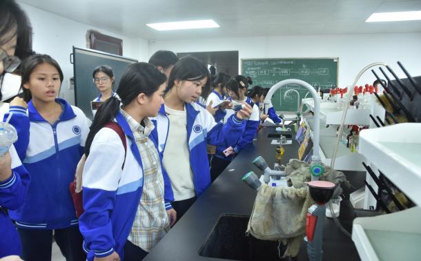 全体同学分两大批参观化学化工学院。在化学化工学院,同学们看到了各种神奇的化学反应和实验现象,了解了化学在日常生活和工业生产中的广泛应用。这次参观不仅拓宽了同学们的知识面,还培养了他们的科学思维和创新能力。相信在未来的学习道路上,他们将以此次研学为动力,砥砺前行,为实现自己的梦想而努力拼搏。