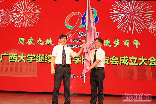 大会审议并通过了必赢网投校友会章程和第一届理事会成员名单。罗廷荣向继续教育学院校友会授予会旗。
