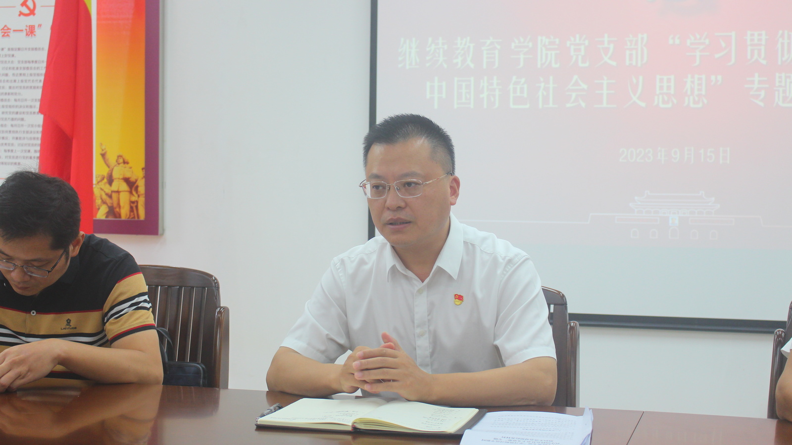 2023年9月15日,继续教育学院党支部在学院206会议室召开“学习贯彻习近平新时代中国特色社会主义思想”专题组织生活会。专题组织生活会由学院党支部副书记陈海主持,支部全体党员参会。