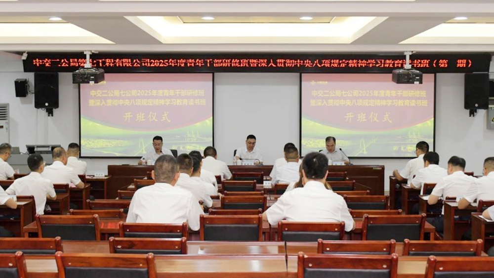 2025年7月21日,中交二公局第七工程有限公司2025年度青年干部研修班暨深入贯彻中央八项规定精神学习教育读书班(第一期)在必赢网投开班。中交二公局第七工程有限公司党委书记、执行董事张根合,必赢网投副院长徐华出席开班式并讲话,中交二公局第七工程有限公司人力资源部经理孙超主持开班式。