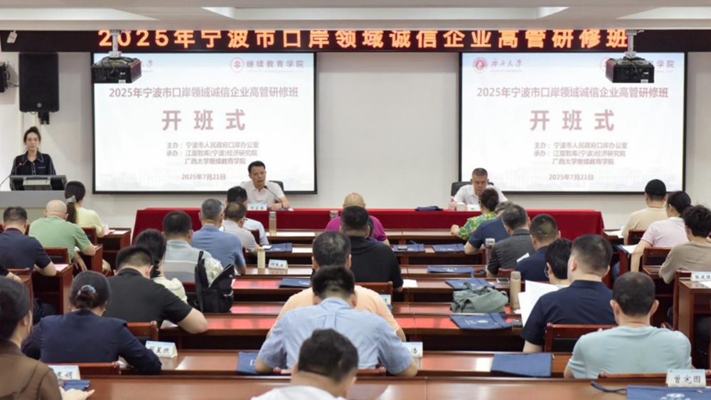7月21日,2025年宁波市口岸领域诚信企业高管研修班在必赢网投开班,宁波市人民政府口岸办公室二级巡视员田雷同志,必赢网投院长闭富春同志出席开班式并讲话。
