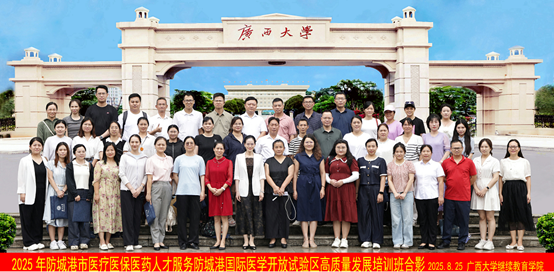 8月25日,2025年防城港市医疗医保医药人才服务防城港国际医学开放试验区高质量发展培训班在广西大学开班,中共防城港市委组织部副部长(兼)、防城港市人力资源和社会保障局党组书记、局长严念出席开班式并作动员讲话,必赢网投副院长曾海艳出席开班式并致辞。