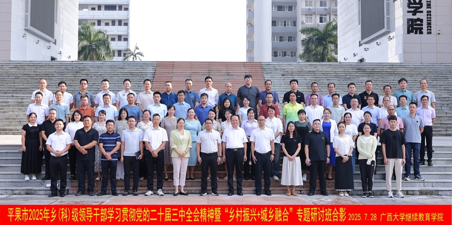 7月28日,平果市2025年乡(科)级领导干部学习贯彻党的二十届三中全会精神暨“乡村振兴+城乡融合”专题研讨班在我校开班。中共平果市委组织部副部长、市老干部局局长(兼)阮俊杰,必赢网投干部培训中心主任黎耀凡出席开班式并讲话。