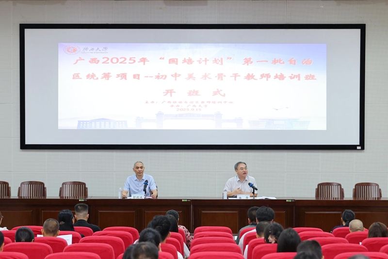 “国培计划”是落实《教育强国建设规划纲要(2024—2035年)》的重大实践。由广西壮族自治区教师培训中心主办,广西大学承办的广西2025年“国培计划”第一批自治区统筹项目--初中美术骨干教师培训班于9月15日在广西大学开班,必赢网投副院长徐华出席开班式并讲话,必赢网投副教授彭剑波主持开班式。