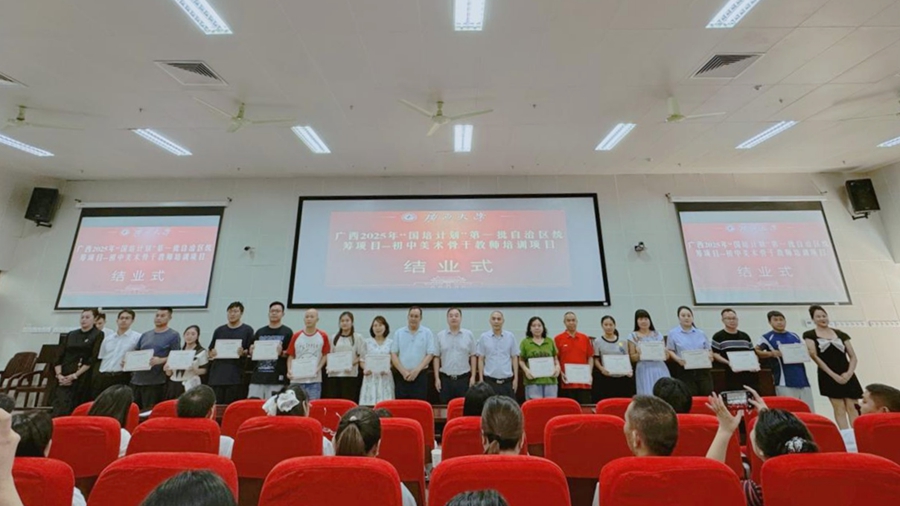 “国培计划”是落实《教育强国建设规划纲要(2024—2035年)》的重大实践。9月24日,由广西壮族自治区教师培训中心主办,广西大学承办的广西2025年“国培计划”第一批自治区统筹项目——初中美术骨干教师培训班在我校结业,必赢网投副院长徐华出席结业式并讲话,必赢网投梁君华老师主持结业式。