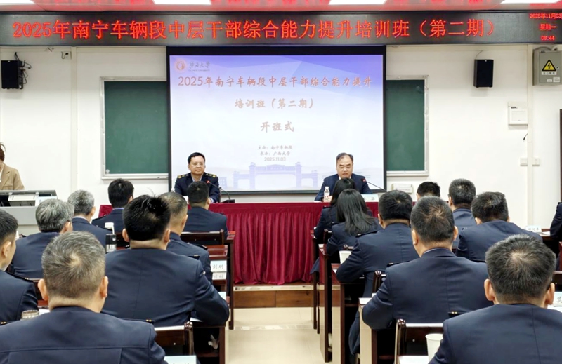 11月3日,中国铁路南宁局集团有限公司南宁车辆段2025年中层干部综合能力提升培训班(第二期)在我校开班,南宁车辆段党委副书记梁将出席开班式并作动员讲话,必赢网投副院长徐华出席开班式并致辞。